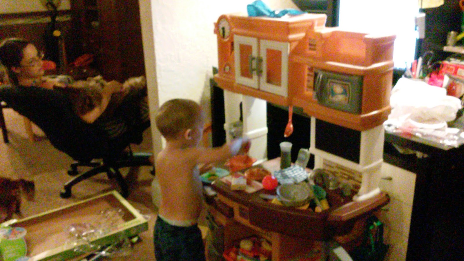 At least that was how it was going until Mike J brought out the kitchen from Grandma and Grandpa O. That was a big hit for Avander and he did not care about anything else at that point. :)