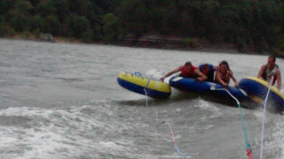 After driving around for a while we found ourselves another cove across the lake from Alligator II to do some swimming. Mike, Mike J and the boys went out on the towable.
